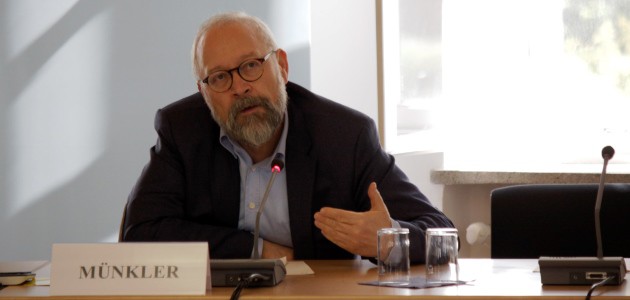 Mit den Teilnehmerinnen und Teilnehmern des Kernseminars 2016 diskutierte der Politikwissenschaftler Professor Dr. Herfried Münkler, wie Deutschland seine außen- und sicherheitspolitischen Interessen stärker zur Geltung bringen kann.
