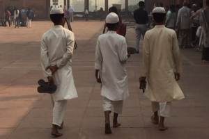 Drei Jungen vor der Jama Mashjid in Delhi, der größten Moschee Asiens: Indien ist divers, nicht nur in puncto Religion. Foto: BAKS/Wagner.