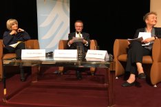 Bei einer gemeinsamen Veranstaltung der Botschaft Franksreichs in Berlin, der Bundesakademie für Sicherheitspolitik und der Friedrich-Ebert-Stiftung diskutierten die Politikerinnen Elisabeth Guigou und Herta Däubler-Gmelin in der französischen Botschaft über den islamistisch motivierten Terrorismus.