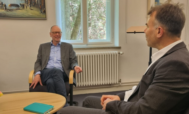 BAKS-Präsident Ekkehard Brose sitzt mit Security.Table-Redakteur Markus Bickel an einem Tisch, und beide sprechen miteinander.